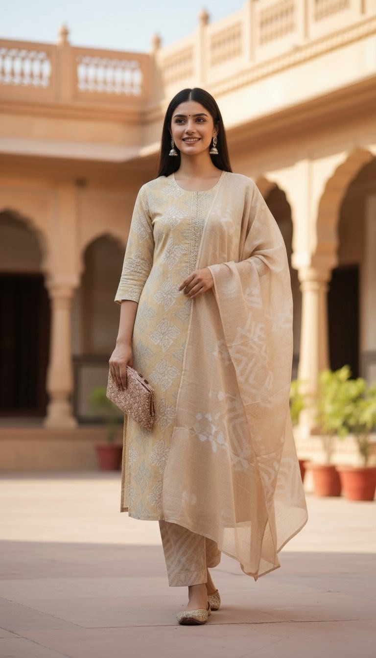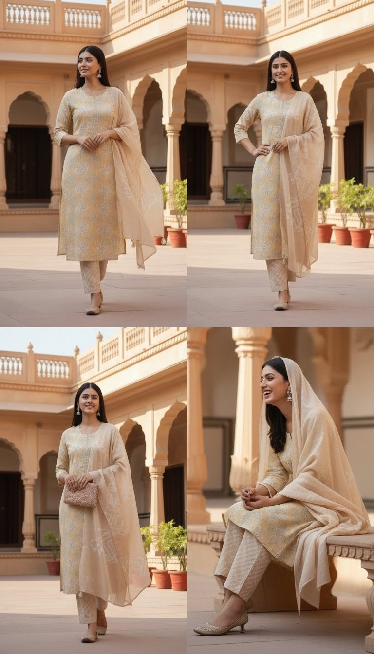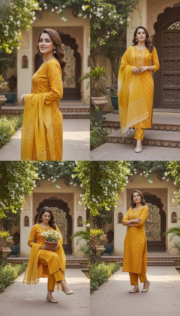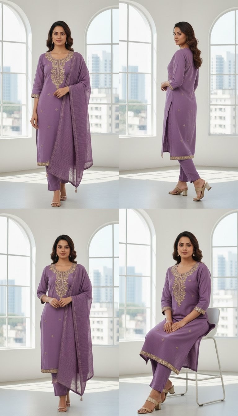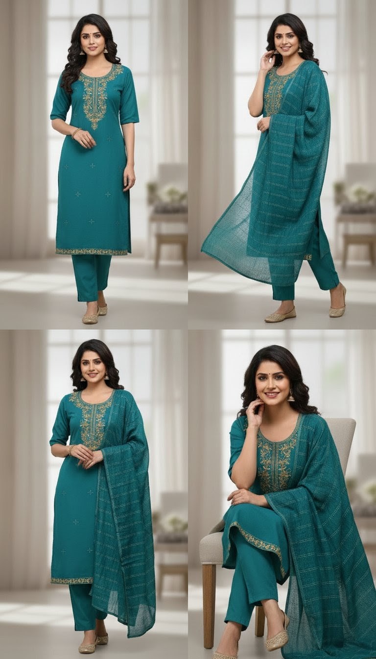 Exude timeless elegance in this deep maroon straight-cut salwar kameez, a perfect blend of tradition and sophistication. The outfit features exquisite golden zari embroidery along the neckline and hem, complemented by a matching dupatta with delicate gold-striped detailing. Paired with coordinating trousers and finished with traditional jhumkas, this ensemble is a stunning choice for evening celebrations or festive occasions where you want to make a regal impression